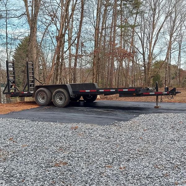 Caurrhee equipment trailer. low boy. 82" x 20', 14000 lb capacity. Dry weight is 3425, Has a 2 5/16" ball. Requires a 3/4 ton truck for you to haul.
